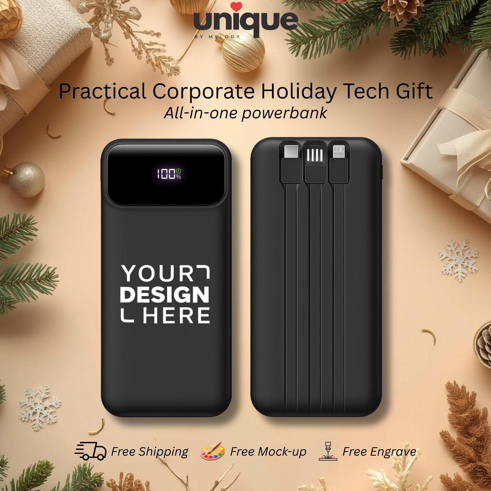 • Custom Logo Powerbank with Built in Cables Holiday Corporate Client Appreciation New Year End Tech Gift Fast Charging Portable Charger Custom Logo Powerbank with Built in Cables Holiday Corporate Client Appreciation New Year End Tech Gift Fast Charging Portable Charger
