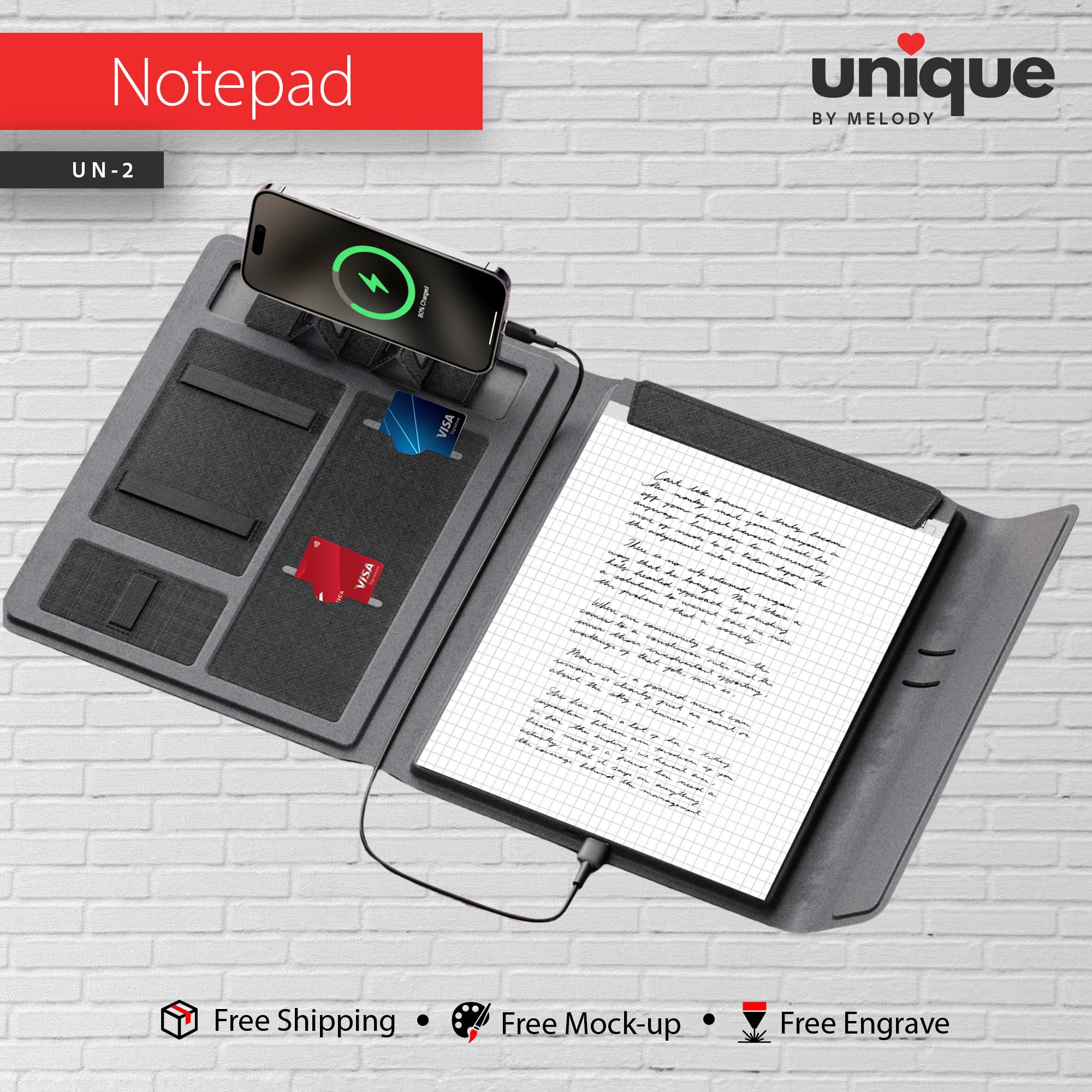 A built-in 5000mAh battery and USB-A output let you charge your phone or tablet on the go. With its refillable notebook design, you can easily replace the notepad with standard refills available from Walmart, Office Depot, or Amazon.