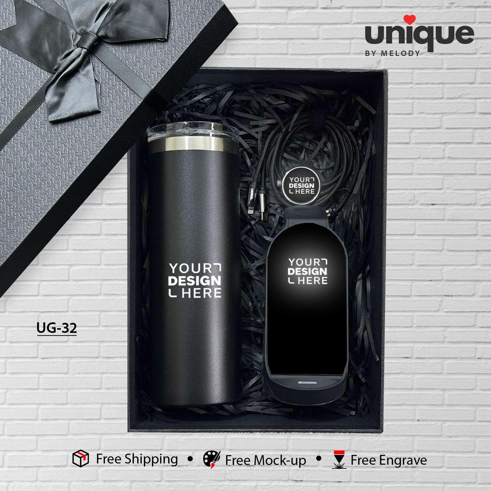 We offer complete gift box experiences—luxurious black, red, and navy-blue packaging, personalized with your company logo. Each gift box can be custom-curated with your choice of smart tech accessories, elegant drinkware, or professional stationery, creating the perfect balance of innovation and elegance.