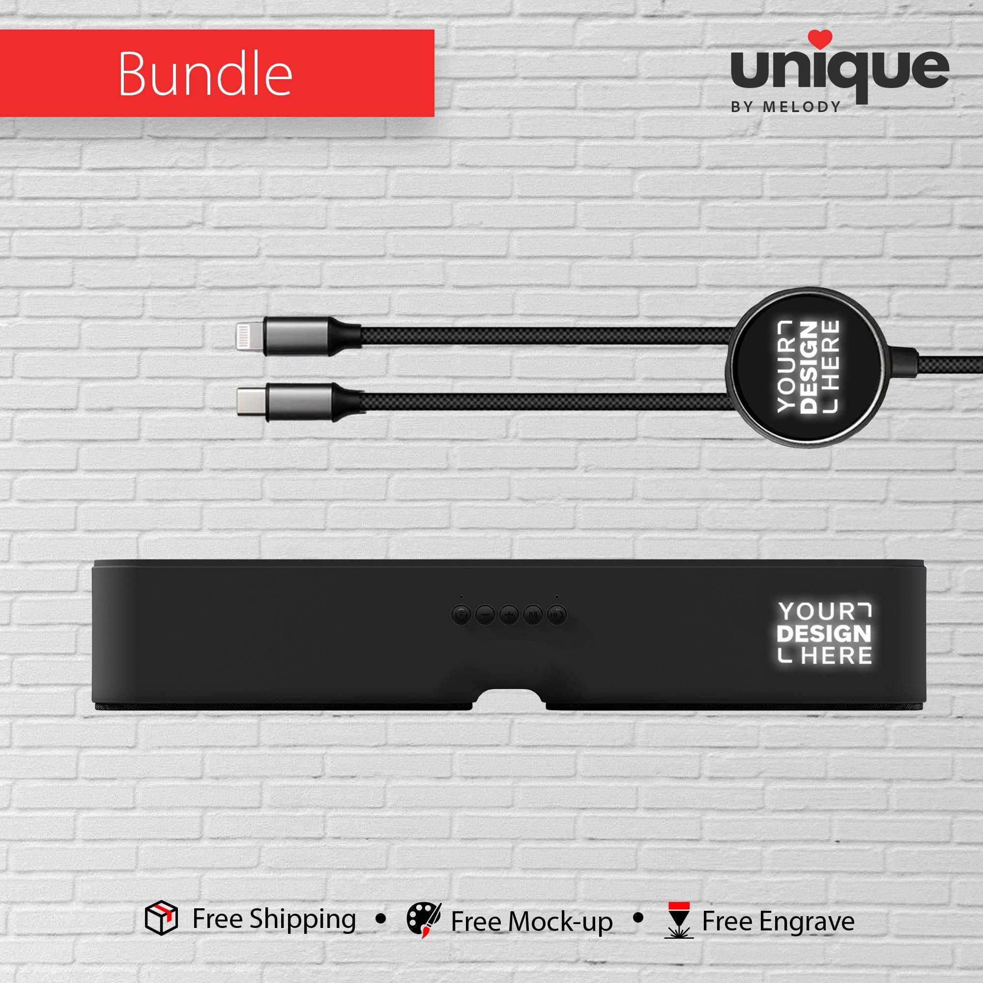 The UniqueByMelody Light-Up Soundbar & Light-Up Cable Gift Set combines premium audio performance with brilliant corporate branding.